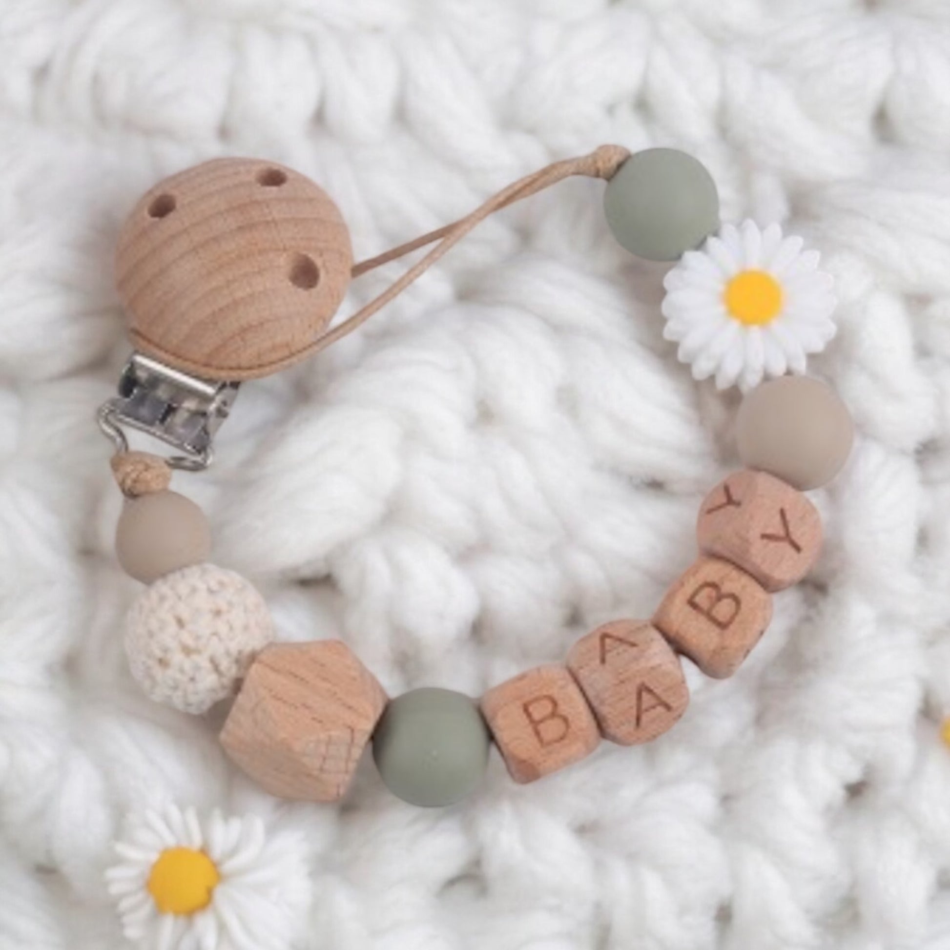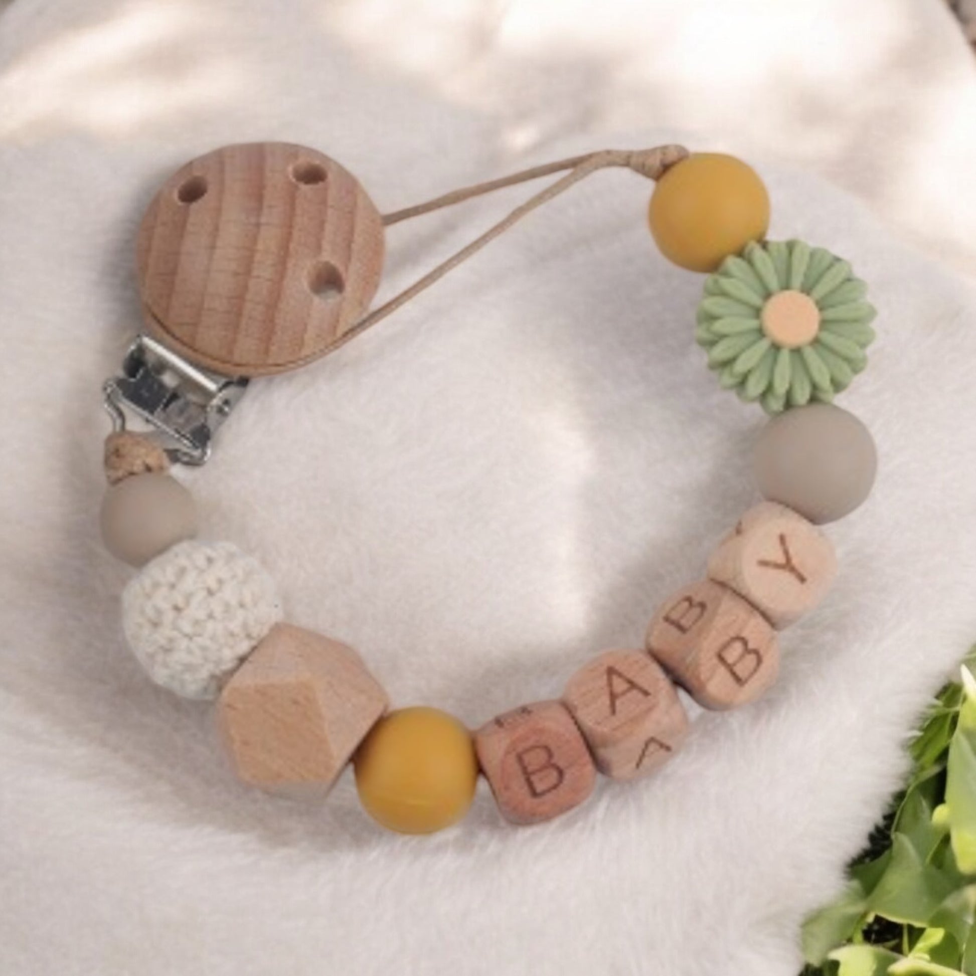 Gardez la tétine de bébé à portée de main avec notre attache-tétine personnalisable en bois et silicone. Fabriqué sans BPA, cet accessoire pratique offre un moyen personnalisé de garder la tétine de bébé à portée de main. Personnalisez-le ci-dessous avec le prénom de bébé.